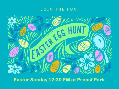 Join us Easter Sunday for our annual Easter Egg Hunt in Propst Park! The fun starts at 12:30 PM sharp! Special egg hunting areas will be designated for ages 0–3, kindergarten–1st grade, and 2nd–5th grade. Don't be late, this hunt doesn't last long!