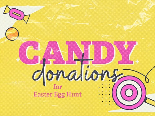 We need your candy for our Easter Egg Hunt on April 5th. Take time to jot down "candy" on your shopping list and drop off your donations at the Connections Counter on any upcoming Sunday, or during church office hours up until Wednesday, April 1st.